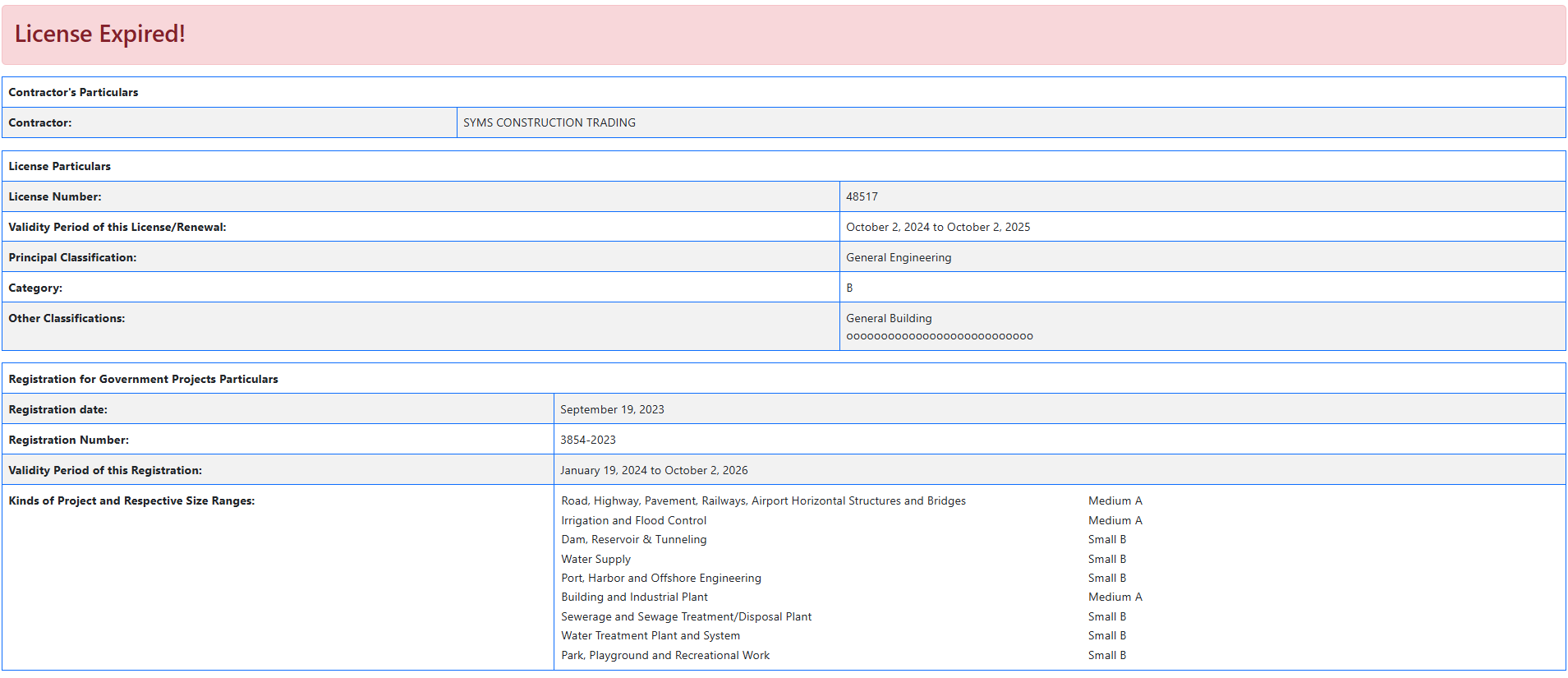Nag-expire na lang ang contrata nila nang wala man lang silang nagawa. Grabe! Nagagawa nilang kumain sa lagay na yan? So, who’s behind SYMS Construction Trading (48517)?