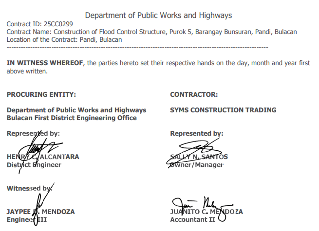 Contract Description: CONSTRUCTION OF FLOOD CONTROL STRUCTURE, PUROK 5, BARANGAY BUNSURAN, PANDI, BULACAN