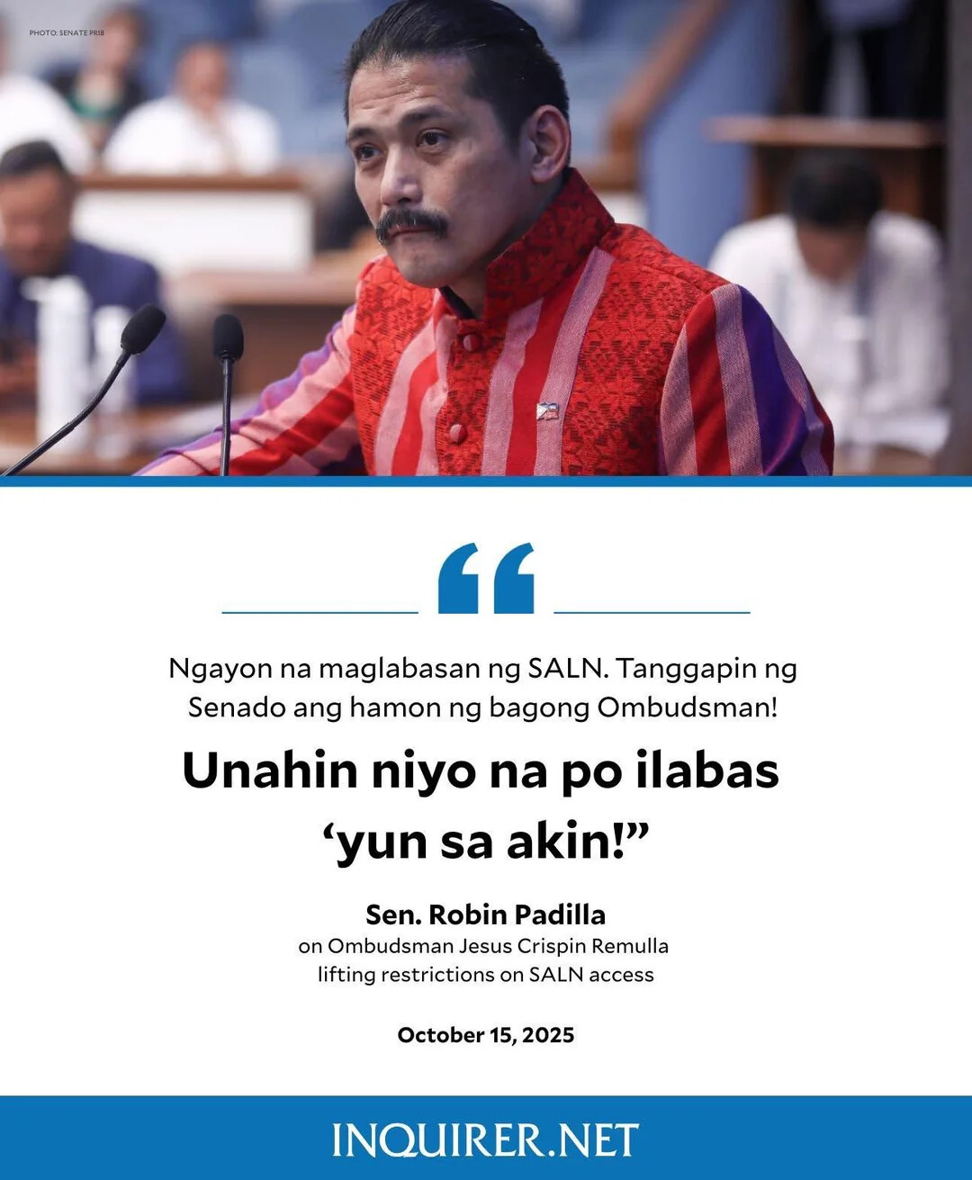 Eh kaso wala namang balak na ilabas niya ang kanyang SALN to prove that he is clean from the corruption.