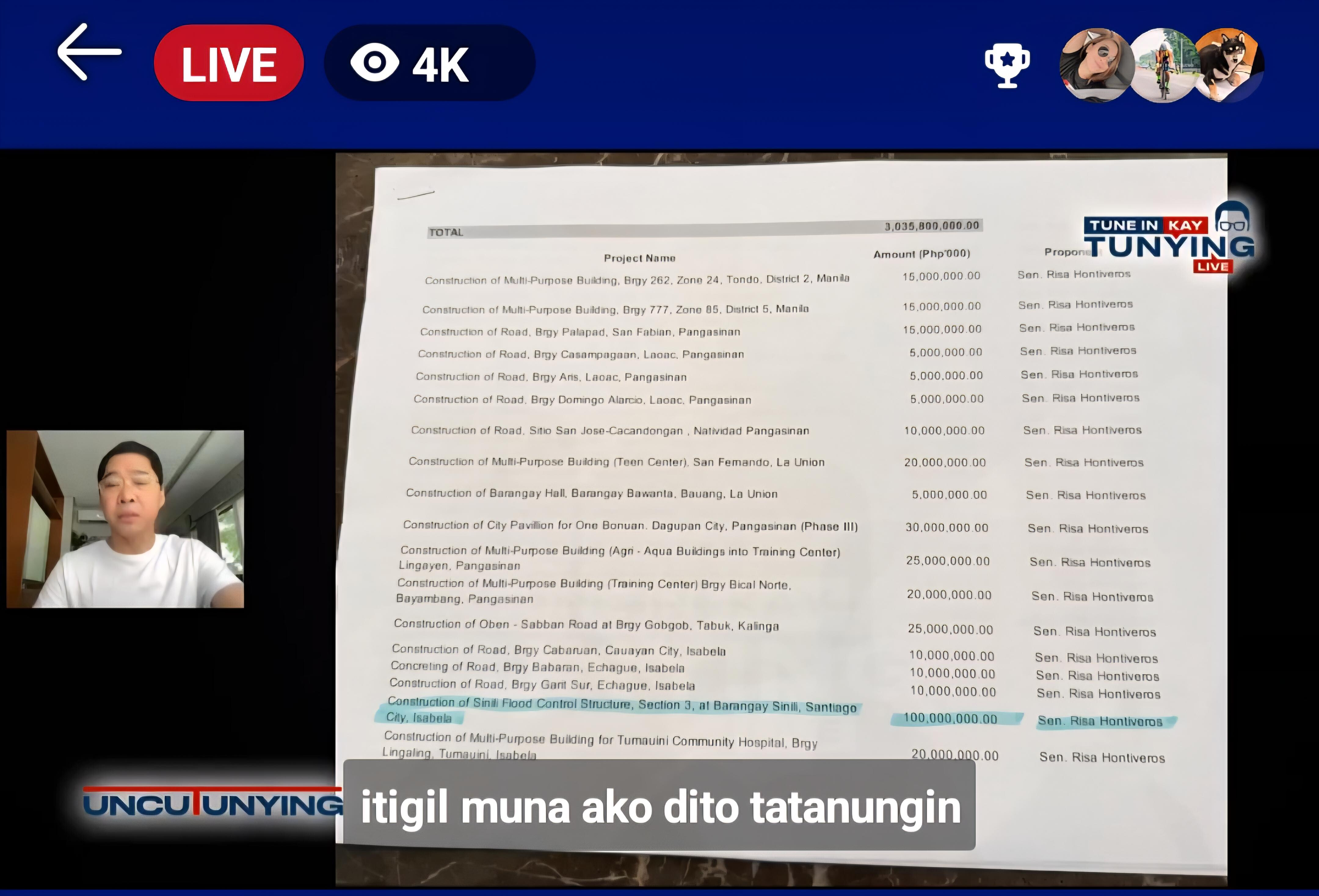Aside from the Benguet racket, Montalvan also noted that during Yap’s term as appropriations chair, Duterte’s first district in Davao City received a staggering ₱51 billion in infrastructure funds.