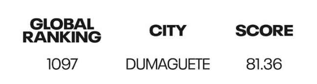 Nakakuha ang lungsod ng score na 80.73%, kasunod ng Dumaguete City sa Negros Island na nakakuha naman ng score na 81.36%.
