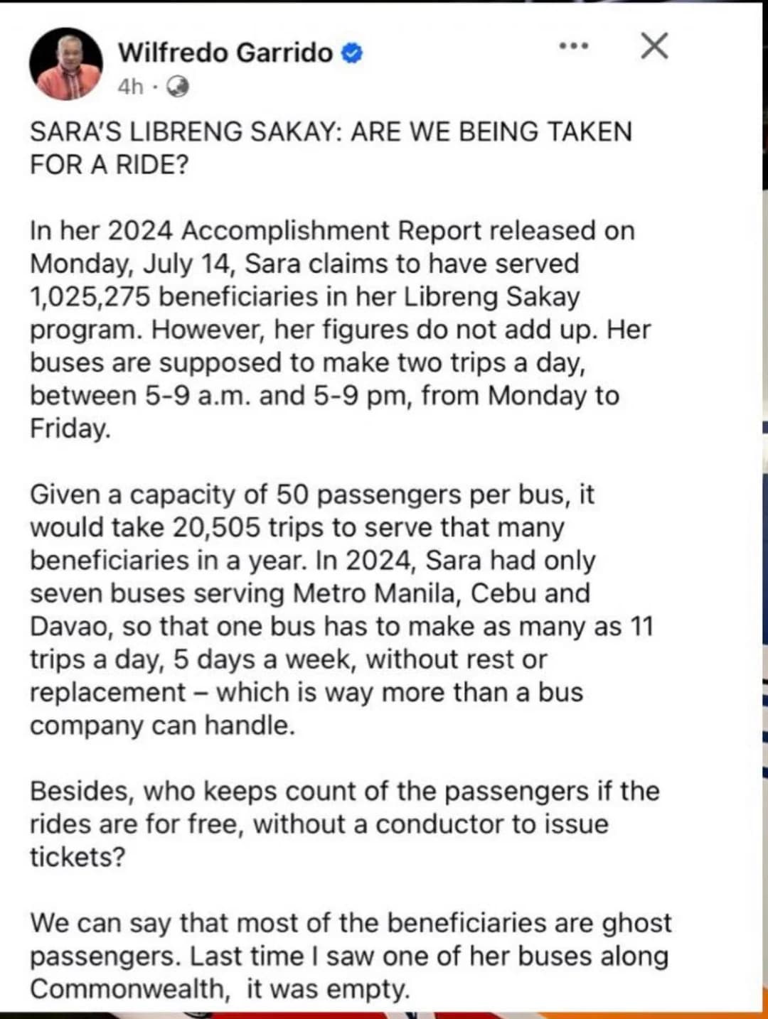 edi madi disallow ang expenses niya sa program na iyan, wait na lang natin ang impression ni COA sa ganyang discrepancy