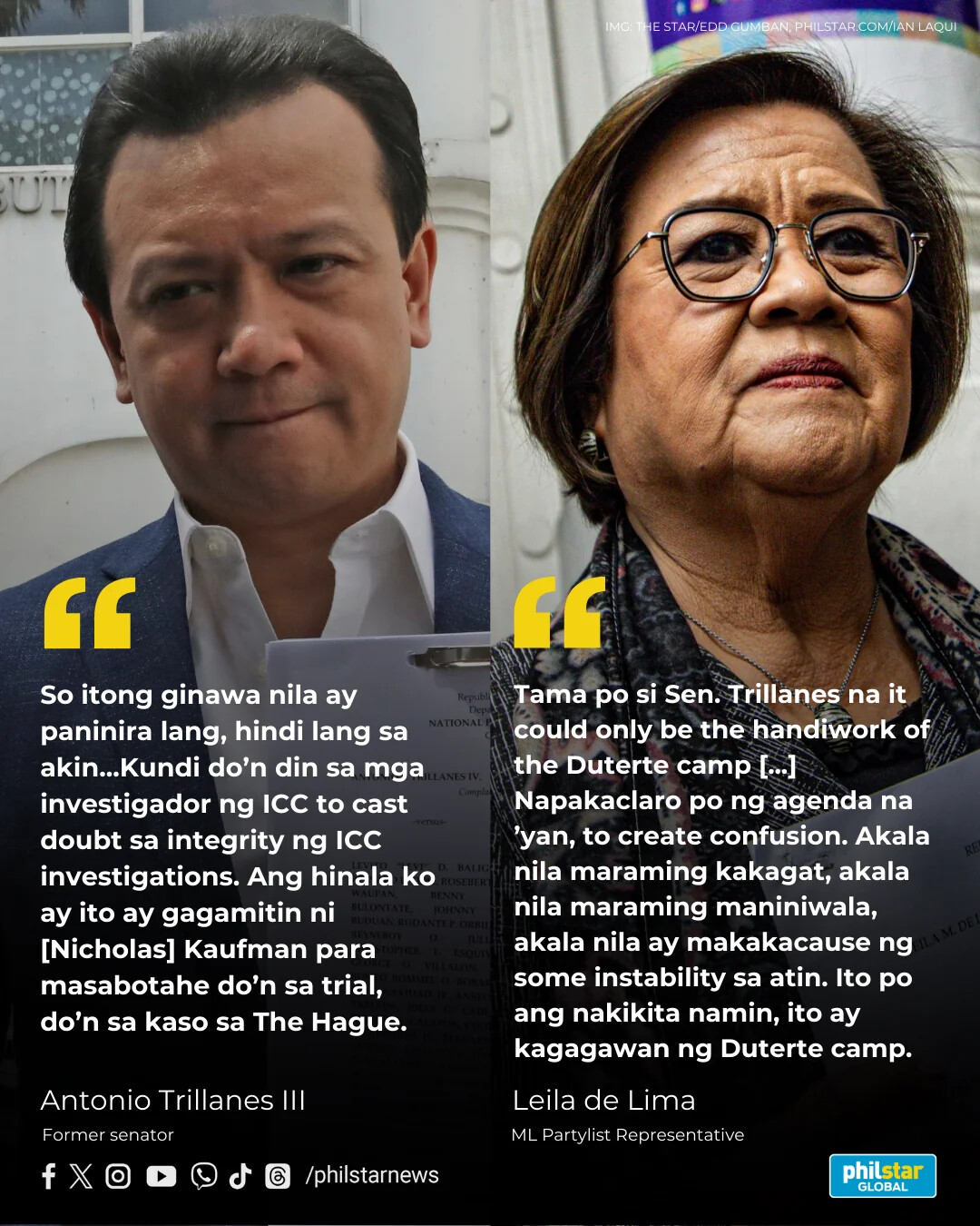 Critics of the former administration have characterized the recent allegations involving 18 former Marines as a calculated distraction, with former senators Leila de Lima and Antonio Trillanes IV pointing to the camp of former president Rodrigo Duterte as the architect of the controversy.