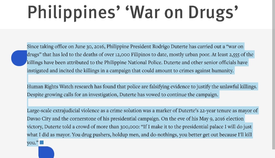 basehan nayan ng ejk?? pero kung titingnan mo yung buong picture, maraming pinatay during his term that led to Human Rights Violation.