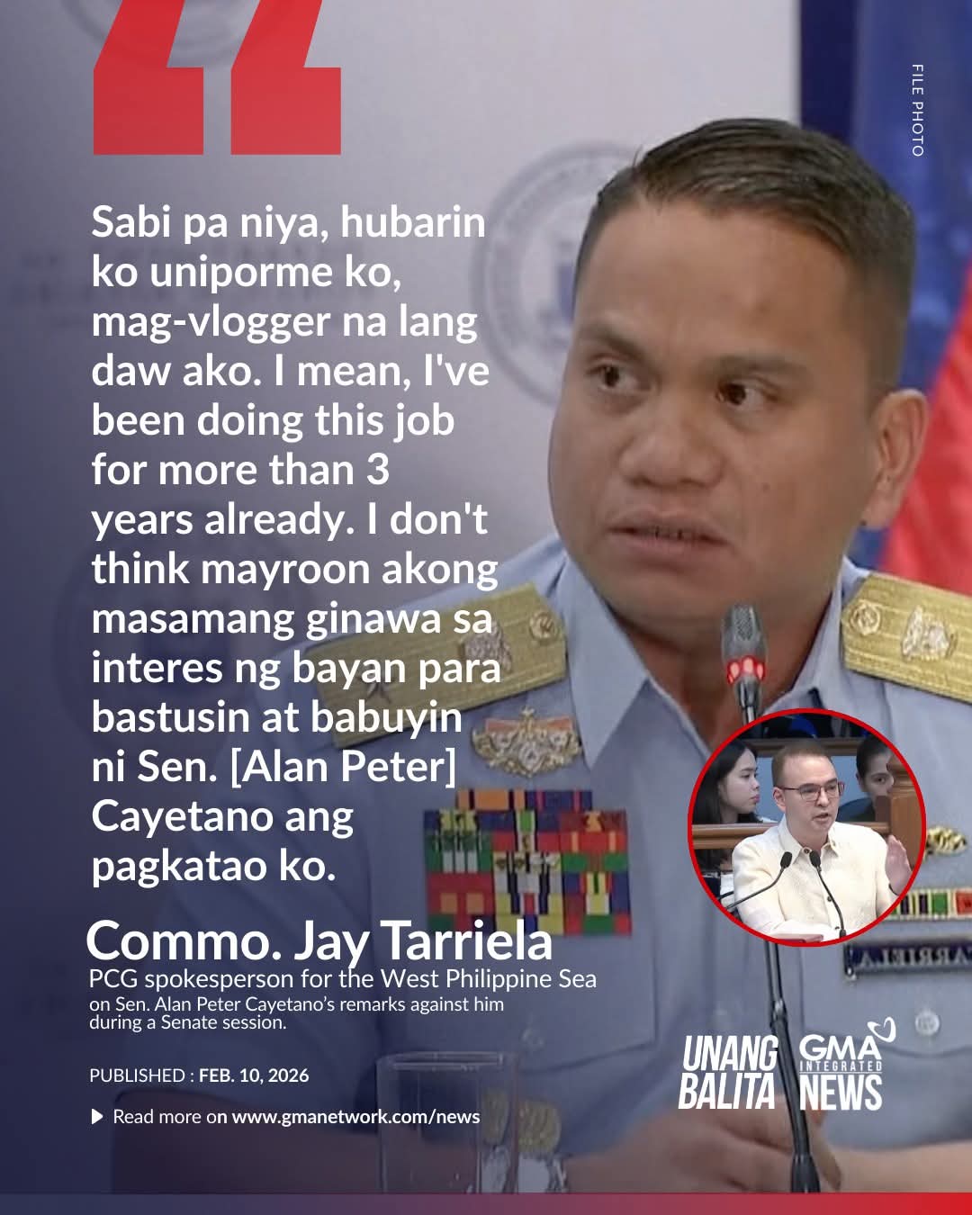 Sinabi ni Commo. Jay Tarriela na hindi patas ang ibinibigay na respeto sa kaniya ni Sen. Alan Peter Cayetano.