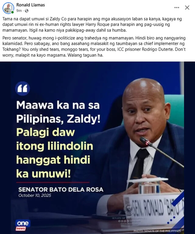 Llamas Claps Back at Dela Rosa Over Remarks on Zaldy Co