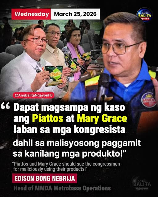 Nagbigay ng reaksyon si MMDA Metrobase Operations Head Edison Bong Nebrija kaugnay sa viral na eksena sa impeachment hearing laban kay VP Sara Duterte, kung saan nagdala ng mga produktong “Piattos” at “Mary Grace” ang ilang mambabatas.