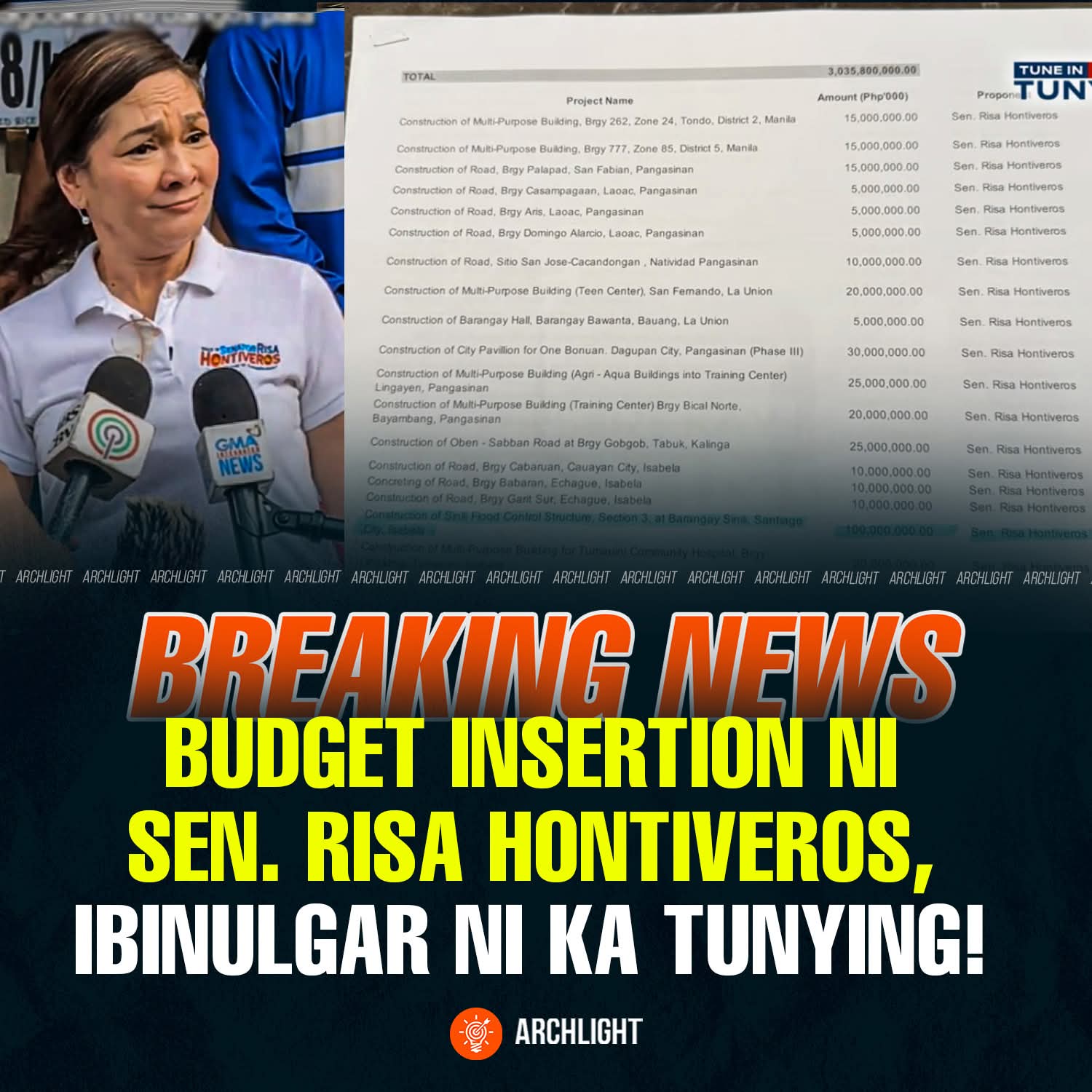 Wala siyang 3 Billion insertion sa 2025 Budget since isa siya sa tumanggi dito noong tinatalakay ito. Ang maganadang mo ang mga nag Yes sa 2025 Budget, malamang may insertion sila dyan.