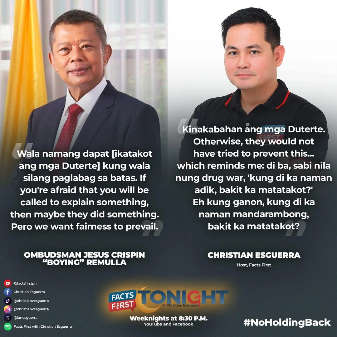 Ombudsman Remulla: Wag matakot ang Duterte kung wala silang nilabag na batas