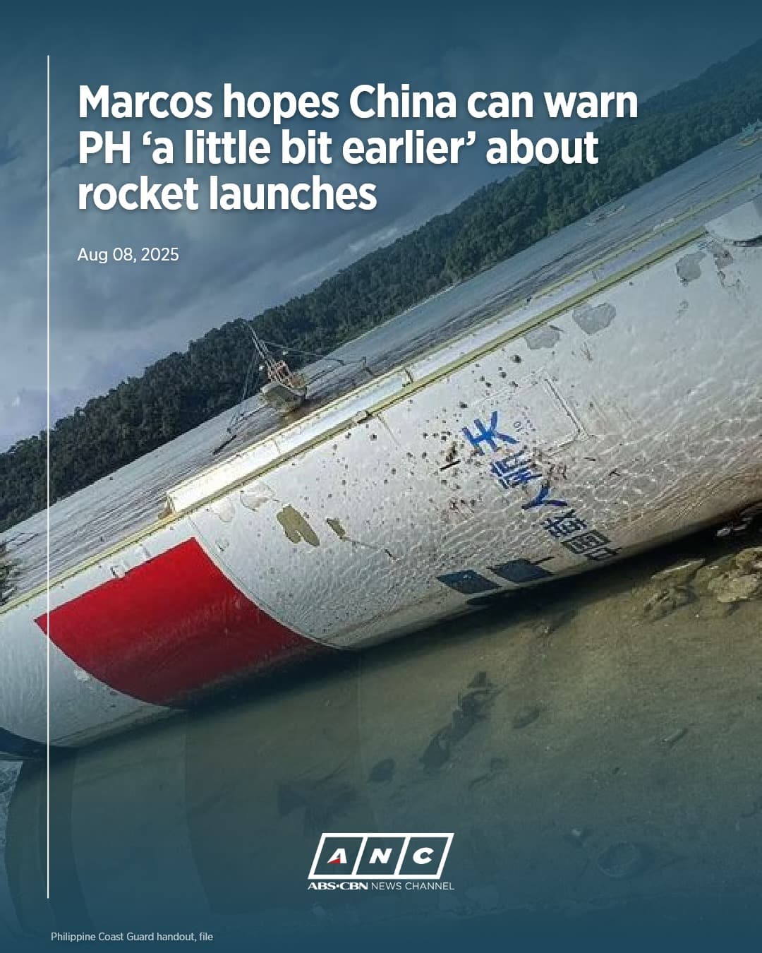 President Ferdinand Marcos, Jr., said he hopes China “could warn us a little bit earlier” when it launches rockets so that the Philippines would know where to monitor falling debris.