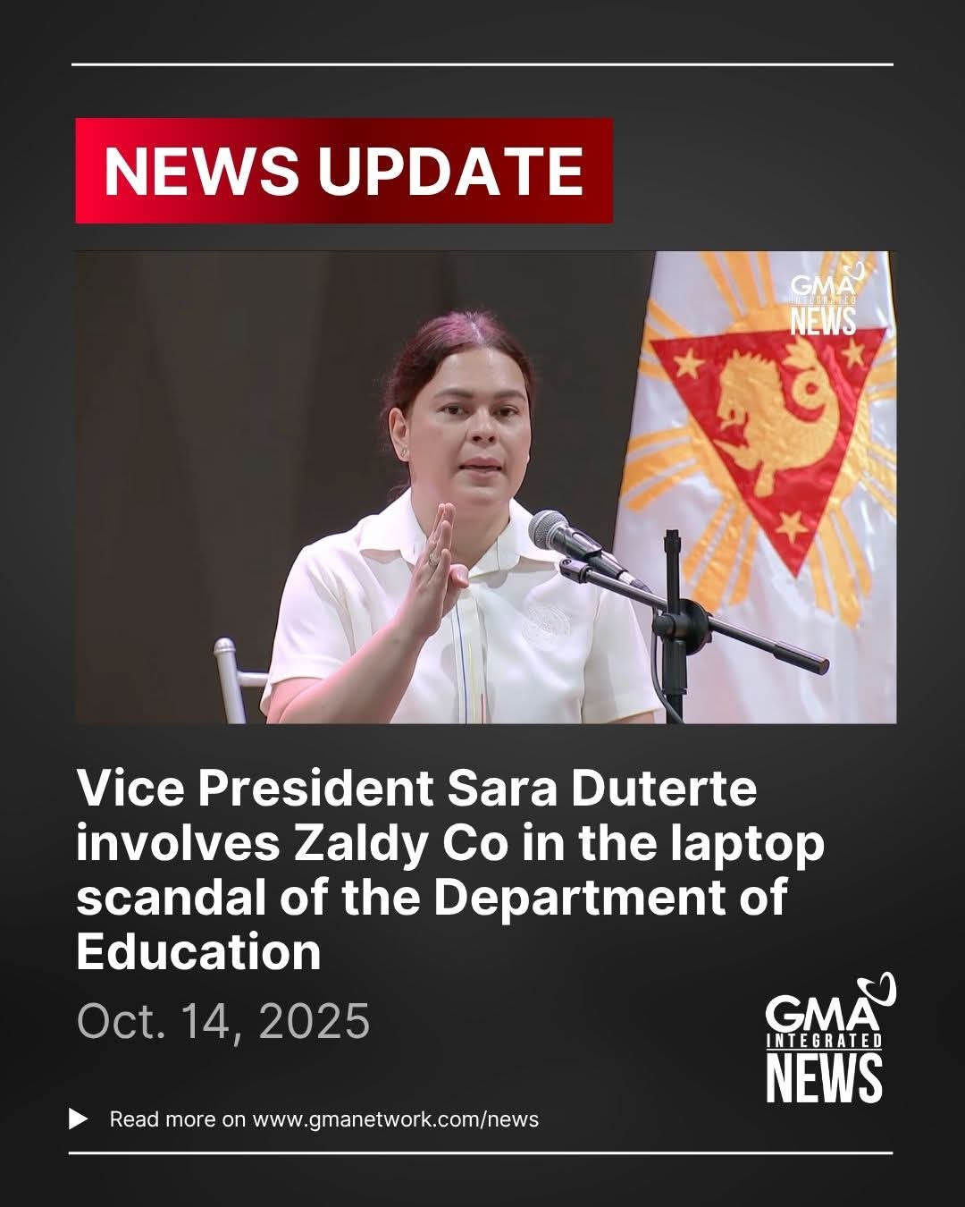 Vice President Sara Duterte involves Zaldy Co in the laptop scandal of the Department of Education.
