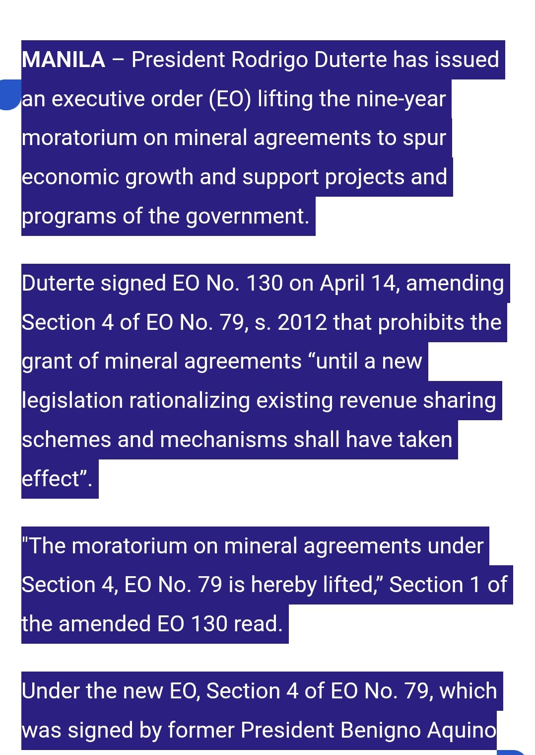 ANONG PAGKAKAINTINDI MERON KA?? OO GUSTO NYA ITULOY YUNG MINING SA TAMPAKAN, PERO HINDI NGA NATULOY KASI MAY PROVINCIAL BAN. NAIINTINDIHAN MO BA SINESEND MO?? HAHAHAHHA