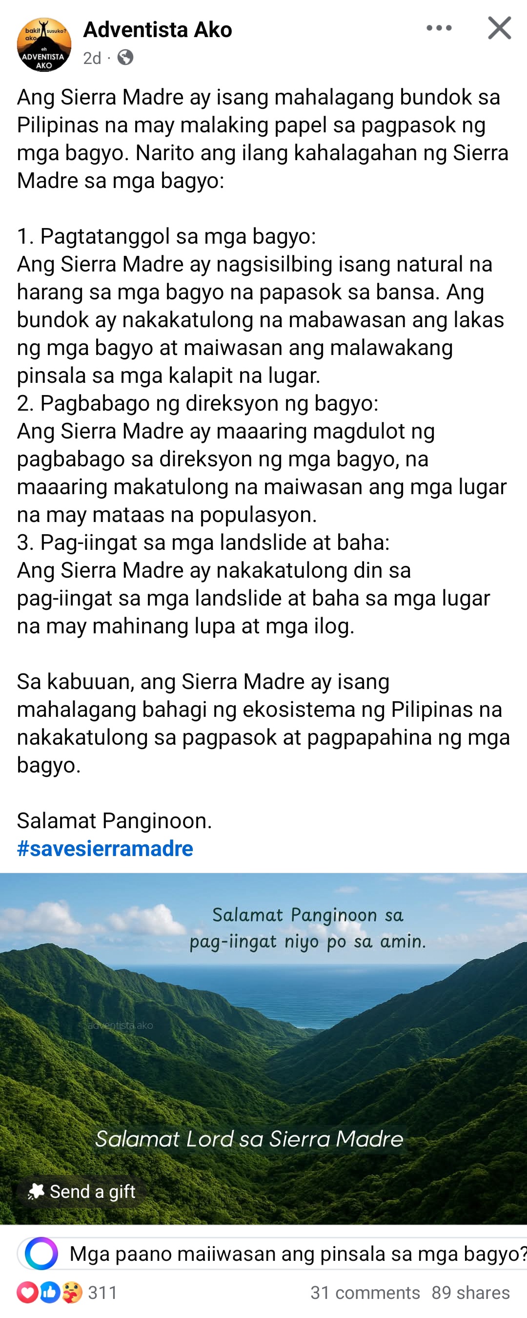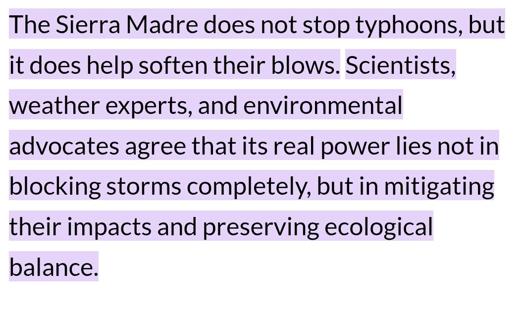 nababasa mo ba yannn???, well oo ayan sinabi nya. pero alin dun ang di mo maintindihan na ang Sierra Madre ang nag p-protekta sa’tin sa mga typhoons??? wag mo gawing rason yan dahil hindi mo naman naiintindihan.
