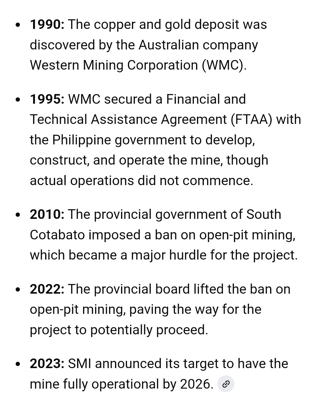 During the Aquino administration, the Tampakan project faced continued opposition due to a provincial open-pit mining ban, but the government granted the project a 12-year permit extension in 2016. The administration’s stance was that national laws allowing open-pit mining should have precedence over local ordinances, though it supported a compromise on the provincial ban. The project was not approved during this period, as a provincial ban remained the primary obstacle.