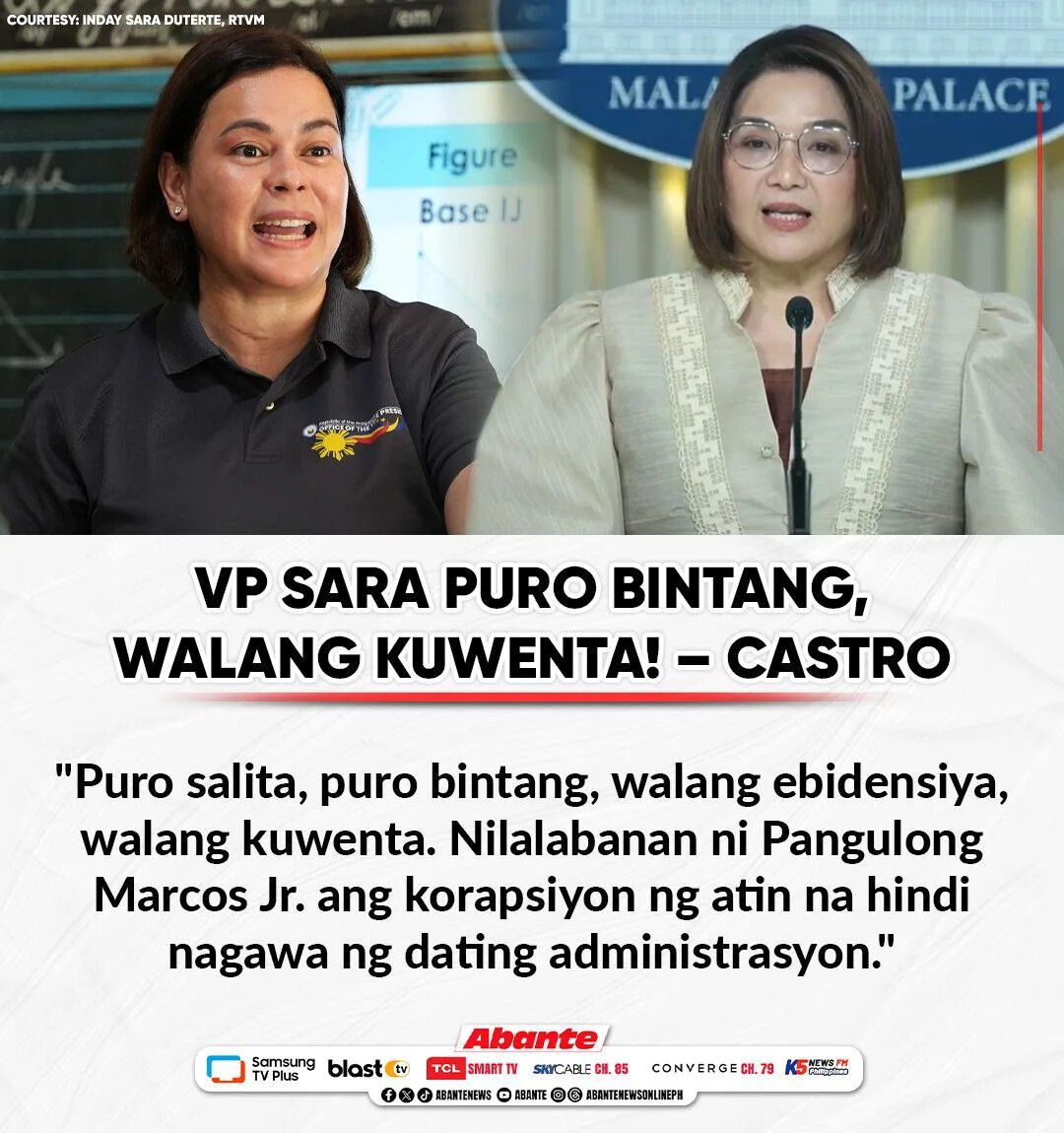 VP Sara puro bintang, walang kuwenta! – Castro